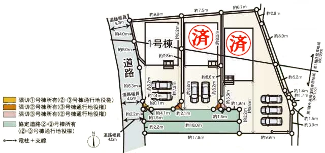 | 土地面積 | 【1号棟】141.51㎡(42.80坪) 【2号棟】済 【3号棟】済 |
