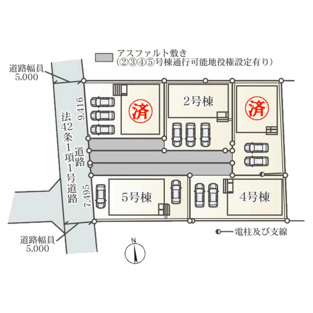 | 土地面積 | 【1号棟】120.52㎡(36.45坪) 【2号地】152.20㎡(46.04坪) 【3号棟】176.46㎡(53.37坪) 【4号棟】164.68㎡(49.81坪) 【5号棟】119.06㎡(36.01坪) |
