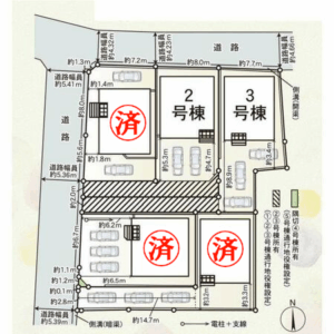 接道 | 【1号地】東6.0m 【2号地】済 【3号地】東6.0m 【4号地】東6.0m 南4.5m 【5号地】南4.5m 【6号地】南4.5m |