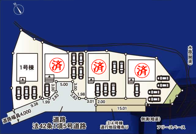 土地面積 | 【1号棟】180.25㎡(54.52坪) 【2号地】済 【3号地】済 【4号地】済 |