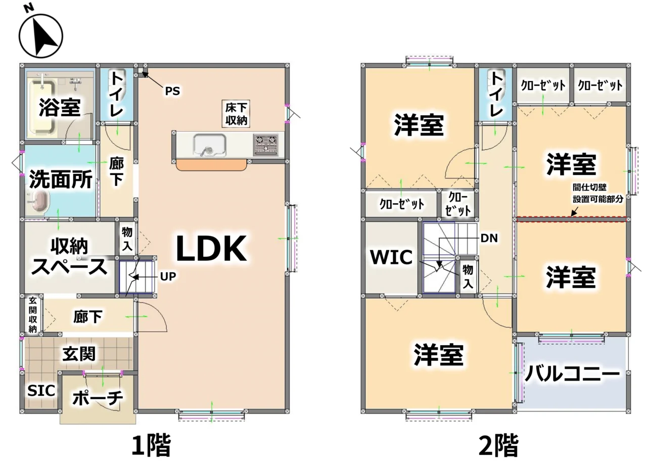 | 価格 | 【1号棟】済 【2号棟】2,980万円(税込) | 間取り | 【1号棟】済 【2号棟】3LDK+wic |